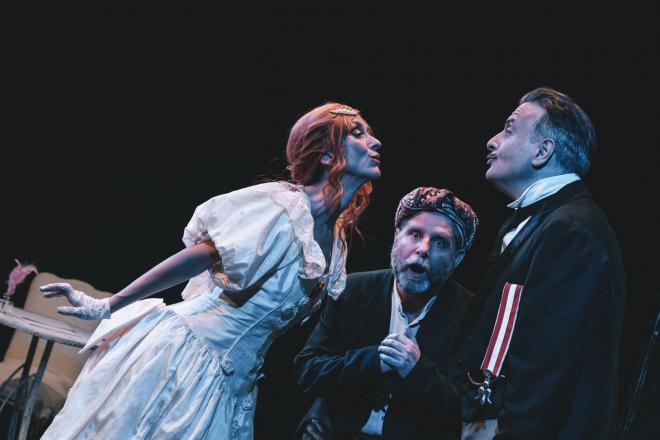 Στην παράσταση συμμετέχει η Ιλιάδα Λαμπρίδου η οποία το 1989 έλαβε μέρος με το ρόλο της Ευανθίας στον «Φιάκα» που ανέβηκε στο Εθνικό Θέατρο σε σκηνοθεσία Γιάννη Νικολαΐδη. Τώρα επιστρέφει στο «Από Μηχανής» Θέατρο με το ρόλο της κοκόνας Φρόσως.