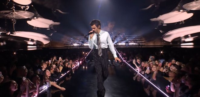 Η εμφάνιση ήταν ένα οπτικό θέαμα, με τον Styles να ανεβαίνει σε μια εντυπωσιακή σκηνή με κερκίδες και να χορεύει μαζί με μια ομάδα από χορευτές φορώντας μαύρα γυαλιά. Το στιλ του, με το ψηλόμεσο παντελόνι και το πουκάμισο με γραβάτα, θύμιζε κάτι από τη glam αισθητική των ’70s, προσφέροντας ένα φρέσκο, αλλά και αναγνωρίσιμο, οπτικό αποτέλεσμα.