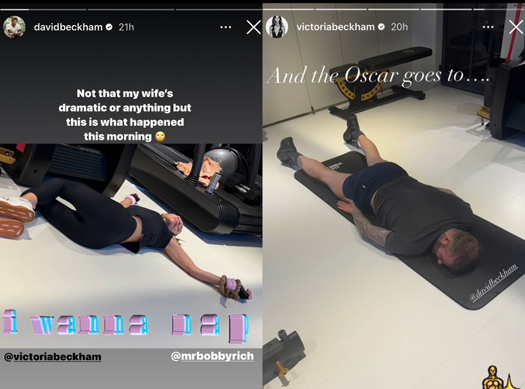 Η Posh όμως, πλήρωσε τον David με το ίδιο ακριβώς νόμισμα, ανεβάζοντάς τον στα stories της, εξαντλημένο πάνω σε ένα yoga mat, γράφοντας πως του αξίζει ένα Όσκαρ για την τόσο… «δραματική» ερμηνεία του!