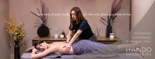 επιβεβαιώνοντας την κορυφαία ποιότητα υπηρεσιών και τον μοναδικό χαρακτήρα του χώρου. Με εξειδικευμένες θεραπείες μασάζ για ζευγάρια, χαλαρωτικά και θεραπευτικά μασάζ, το Hando Massage & Spa προσφέρει μια εμπειρία απόλυτης απόδρασης, ιδανική για τον Άγιο Βαλεντίνο και για κάθε στιγμή που αξίζει κάτι ξεχωριστό. Τηλ. επικοινωνίας: 211 7506722.