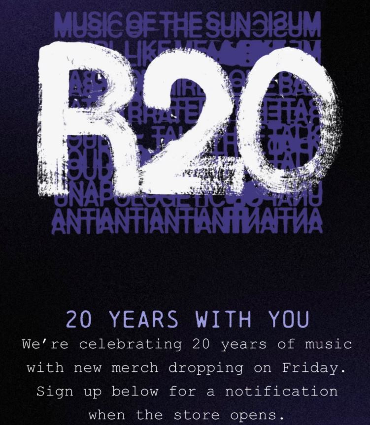 H Rihanna γιορτάζει τα 20 χρόνια από την κυκλοφορία του ντεμπούτο album της Music Of The Sun και κυκλοφορεί στις 29 Αυγούστου νέο επετειακό merch! Όπως ανακοίνωσε χθες στα μέσα κοινωνικής δικτύωσής της με την εγγραφή στο newsletter οι ενδιαφερόμενοι θα λάβουν πρώτοι τα νέα για να μπορέσουν να το αποκτήσουν.